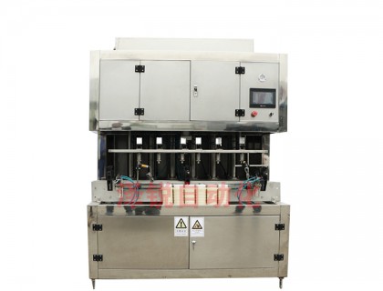 灌裝規(guī)格隨意調(diào)整,真空回吸裝置可有效灌裝嘴不滴漏,先快后慢雙速灌裝,杜絕了液體起沫外溢現(xiàn)象